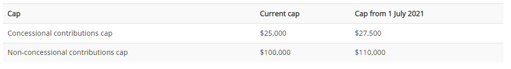 Indexation will increase the concessional and non-concessional contribution caps from 1 July 2021. These caps are indexed by average weekly ordinary time earnings (AWOTE).